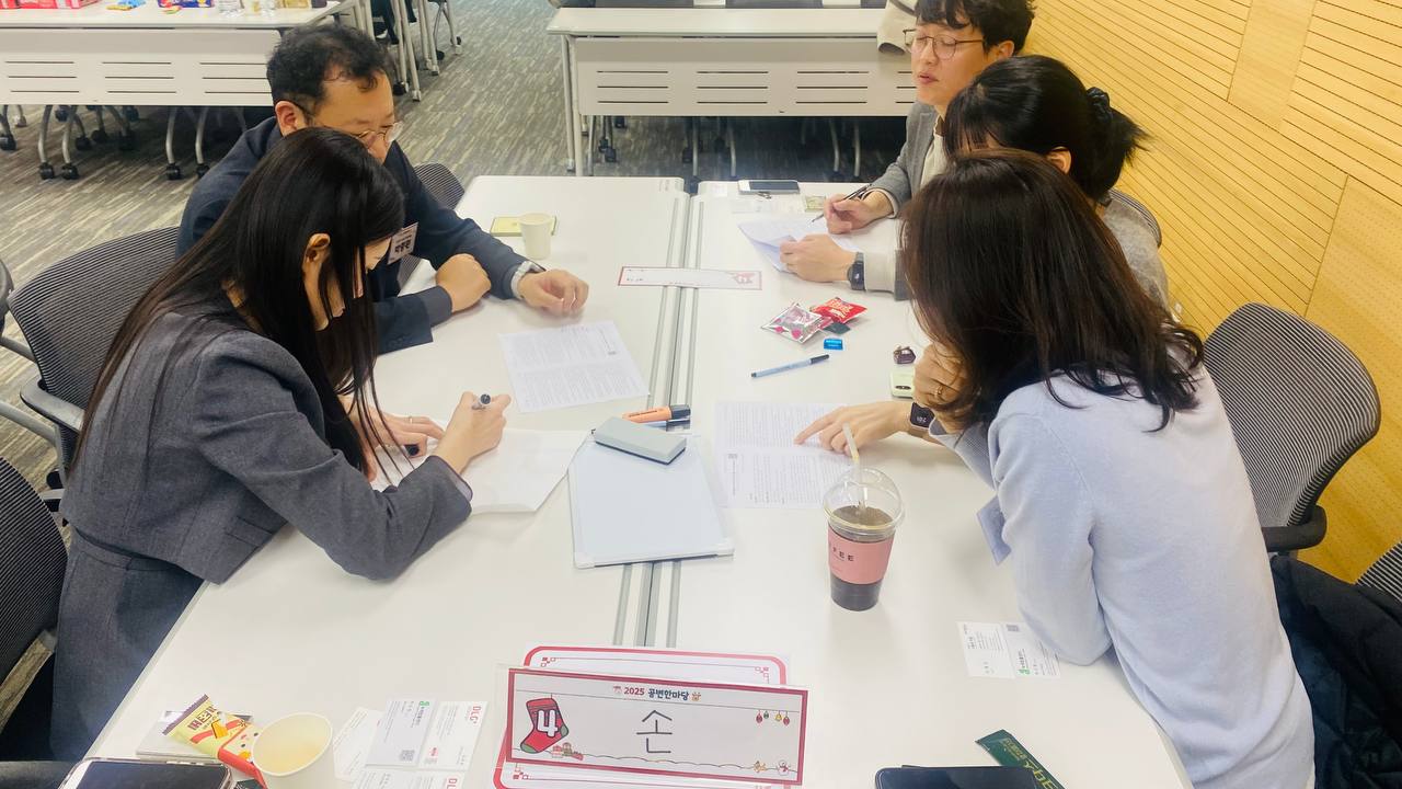 나눔과이음은 매년 '공익법률단체 구성원들이 한자리에 모여 서로의 활동을 공유하며 상호 경험과 정보를 나누고, 나아가 한국에서의 공익법률단체의 전망과 과제를 논의'하는 행사인 공변한마당 실무 지원 및 후원을 하고 있습니다. 2025년 11월 21일 개최된 '2025 공변한마당'에서는 공익변호사 및 공익단체 사무국원, 활동가 등 30여 명이 모여 '번아웃 예방을 위한 마음챙김 워크숍'이라는 주제로 네트워킹과 세미나를 진행하였습니다. - 점심시간 12:00~13:30 - 네트워킹 13:30~15:00 - 워크숍 15:00~17:00 바쁘신 와중에도 즐거운 마음으로 함께해주신 공변모임 구성원 분들께 깊은 감사드립니다. 감사합니다. 나눔과이음 드림 |