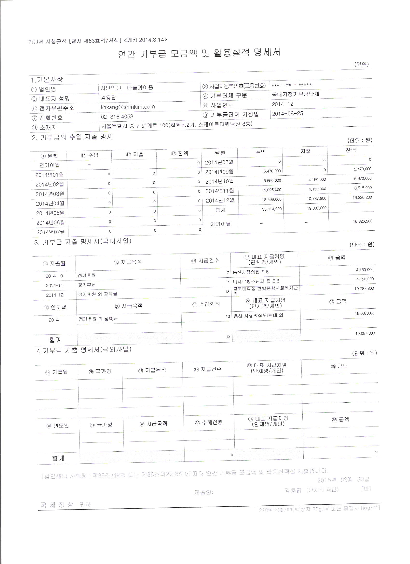 2014 지정기부금 모금 및 활용실적 공개